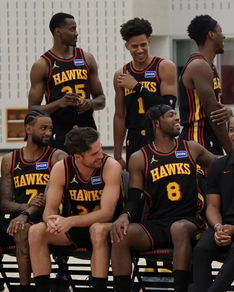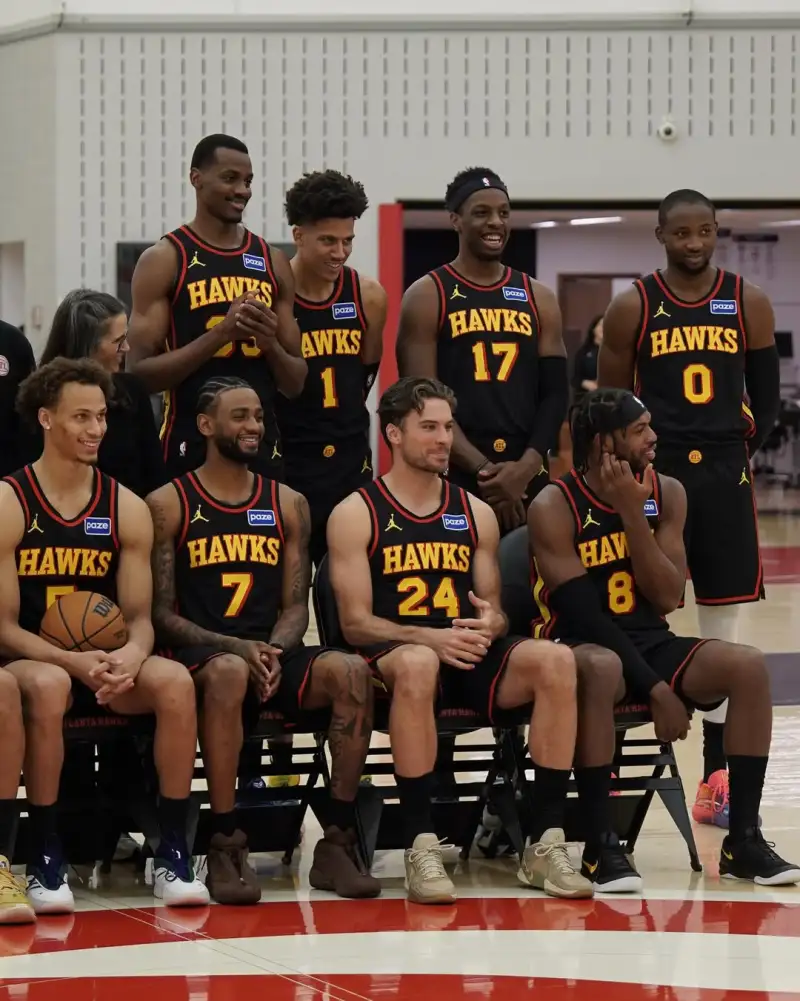 虎扑03月12日讯 老鹰官方更新Ins,晒出一组球员们拍摄全家福的侧拍照与球迷分享。